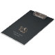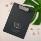 Island chic personalized clipboard features two lines of custom text in classic white lettering, on a rich soft black background adorned with a tropical conch shell illustration in faux copper foil. Design repeats on reverse side. Add your name or business name to this elegant clipboard with a modern beach vibe.