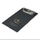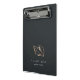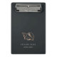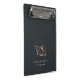Island chic personalized clipboard features two lines of custom text in classic white lettering, on a soft black background adorned with a tropical conch seashell illustration in faux copper foil. Design repeats on reverse side. Please note that this clipboard is a mini size; full size version also available in our Conch Shell collection.