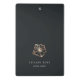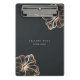 Island chic personalized clipboard features two lines of custom text in classic white lettering, on a soft black background adorned with a tropical hibiscus flower illustration in faux copper foil. Reverse side shows a variation on the design with a smaller flower and your custom text. Please note that this clipboard is a mini size; full size version also available in our Hibiscus collection.