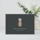 Elegant gift certificate design displays your name and/or business name beneath a faux copper foil pineapple illustration on a soft black background. Add your desired gift certificate wording and business contact information on the reverse side with a smaller pineapple illustration. A chic and elegant choice for salons, makeup artists, hair stylists, spas, boutiques and more.