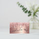This gorgeous hairstylist business card design features faux pink & copper rose gold dripping glitter metallic texture, scissors and elegant calligraphy font.