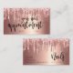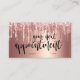 Pretty appointment card design in faux copper rose gold dripping glitter metallic texture and elegant calligraphy font.