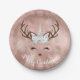 Elegant copper rose gold marble unicorn reindeer paper plate