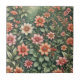 This beautiful ceramic tile showcases an array of vibrant flowers in shades of coral, peach, and soft pink, set against a lush backdrop of verdant green leaves. Each flower is meticulously detailed, with delicate petals and intricate centres that capture the essence of a blooming garden. The harmonious blend of colours and the intricate pattern make this tile a perfect choice for adding a fresh, botanical charm to your home decor.
