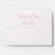 This wedding envelope features a minimalist design with elegant, flowing cursive typography for the names and straightforward serif text for the address. The muted coral pink colour palette adds a touch of romance and sophistication, making it perfect for formal events or announcements. With ample negative space around the text, the layout emphasizes clarity and readability while maintaining an understated elegance. Ideal for couples looking to add a personal yet refined touch to their wedding stationery, this design is both modern and timeless.