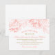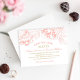 Soft and romantic, this no-photo save the date features a large-scale coral peony line art illustration across the top on a white background with coordinating coral and gold typography. The refined botanical aesthetic suits spring, garden, or summer celebrations beautifully. All text is fully customizable.