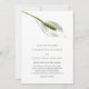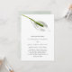 Elegant floral spring or summer wedding invitation features a single peace lily in shades of greyed sage and cotton white. Personalize with your wedding details in trendy lettering. A beautiful choice for elegant spring or summer weddings.