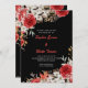 At the heart of this invitation lies a stunning floral border that weaves together the warmth of red roses, the purity of white flowers, and the verdant beauty of greenery. This enchanting combination brings the allure of nature to the forefront, creating an invitation that balances opulence with the rustic appeal, perfect for couples seeking a touch of elegance and coziness.