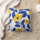Élégant Coussin Floral Jaune et Feuille Bleue