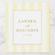 These elegant wedding wine labels feature a minimalist design with a central white square bordered by gold lines, set against vertical yellow and cream stripes. The colour palette includes soft yellows, creams, and golds, creating a warm and inviting tone perfect for celebrating special moments. With customizable placeholder text in classic serif fonts, these labels offer a sophisticated touch to any wedding celebration, emphasizing simplicity and focus on the essential details. Ideal for adding a personal and luxurious feel to your event, these labels are designed to make your wedding stand out.