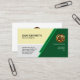 Design features two green trapezoids at the right face of the card. Inside this column you can find your faux gold logo, its business name and a slogan option. Over at the top left corner lies your prestigious name and job title. Southwards to this are the contact details.