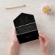 Elegant black all-in-one wedding invitation featuring your monogram initials inside a vintage wedding crest, your names, "Reception to follow" and "Rsvp" showcased in a chic calligraphy script, your invitation details in classic serif typography, and a white tear-away RSVP response postcard, all rendered in your choice of genuine gold, silver or rose gold foil. If desired, you can adjust the size of the script for longer or shorter names by editing in the design tool.