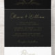 Elegant Crest Monogram Script Black Wedding All In One Invitation