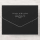 Elegant black wedding invitation with your monogram initials inside a wedding crest, your first names, "Reception to follow" and "Rsvp" showcased in a chic script, your invitation details in classic serif typography, and a white tear-away RSVP postcard, all rendered in your choice of genuine gold, silver or rose gold foil. If desired, you can adjust the size of the script for longer or shorter names by editing in the design tool.