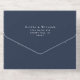 Elegant dark navy blue all-in-one wedding invitation featuring your monogram initials inside a vintage wedding crest, your names, "Reception to follow" and "Rsvp" showcased in a chic script, your invitation details in classic serif typography, and a white tear-away RSVP response postcard, all rendered in your choice of genuine gold, silver or rose gold foil. If desired, you can adjust the size of the script for longer or shorter names by editing in the design tool.