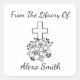 Elegant Cross and Flowers Personalized Bookplate Square Sticker