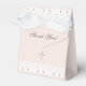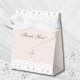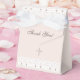Personalize this Christian baptism favor box to create a meaningful keepsake for your little one’s special day. The design features a cross in elegant soft beige pearl graphics, accented with delicate white lace and pearl details, set against a soft pink beige background. With a minimalist, vintage-inspired look, this favor box is perfect for christening, simple baby dedication, and baptism celebrations. The mocha brown colored typography and graceful script font adds a timeless touch, making it a beautiful way to present favors and express your heartfelt thank you to guests on your baby's faith-filled day. Be sure to see the collection for matching items to complete your coordinated look.