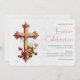 Elegant Cross with Pink Flowers Easter Invitation