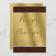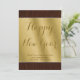 This custom New Year flat card features elegant background art of brushed gold, silver trim and a dark wood grain border. "Happy New Year" is boldly featured in a script font in gold. This template includes a spot for you to add your own unique greeting or use the standard greeting which reads "Wishing You Love, Happiness, and Health", followed by a spot to personlize it with your own name or list the names of all your family. It's easy to customize for your own unique greeting. The back is a simple gold background, matching the gold on the front.