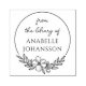 This elegant custom library book rubber stamp features a round simple wreath with flowery botanicals on the bottom. Inside is your custom name in elegant typography and ´from the library of´´ text in lovely handwriting. To make your own library book stamper, click on the ´´Personalize´´ button and replace the template name with your own.