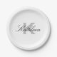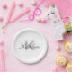 Elegant custom monogrammed paper party plates. Disposable paper plates for Birthday, wedding, baby shower and more. Classy monogram template with stylish script typography. Classy black and white design. Great for cake and more
