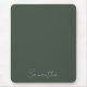 Elegant Custom Name Mouse Mat in dark green with name in silver handwriting. Simply fill in your name or customize further to create your personalized mouse mat.