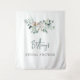 Elegant Winter Greenery Foliage Calligraphy Script Bridal Shower Photo Backdrop or Welcome Tapestry - fully customizable text elements to fit your wedding event.