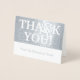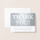This elegant and customizable silver foil thank-you greeting card design features the message "THANK YOU!" on the front, along with a customizable message on the inside. It could be used to show gratitude to somebody who has done something nice.