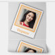 The design is of a photograph featuring a customizable photo and typography field, which currently reads "Elegance" for name, monogram or other personalization on a saffron mango, apricot peach coloured backing - all presented in a simple, elegant pattern on a light grey background.