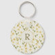 Elegant Daisy Floral Design Ivory Greenery Branch Keychain