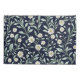 This seamless floral pattern features delicate white daisies with soft yellow centres, surrounded by pale green leaves and tiny buds, all set against a deep navy blue background inspired by William Morris. The design exudes a classic, timeless elegance perfect for wallpapers, textiles, and stationery. The contrast between the vibrant flowers and the dark backdrop creates a sophisticated and calming aesthetic.