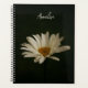 Une marguerite fraîche fait une déclaration simple et audacieuse sur cet élégant planificateur noir. Les pétales de fleurs blanches ont l'air lumineux sur l'arrière - plan sombre. Votre nom apparaîtra au-dessus de la photographie florale dans une belle écriture féminine.