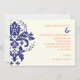Elegant damask navy blue, coral, ivory wedding invitation
