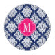 Fashion and elegant dark dark blue Navy and white diamond floral damask pattern. Pink blue frame. Personalize it with your monogram, name or initials. Click on the "customize it" button if you want to do any changes to the design. Choose font style and colour. Trendy damask pattern for girly girls.