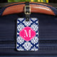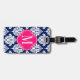 Elegant Damask Navy & Pink Custom Monogrammed Luggage Tag