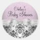 Baby Shower Sticker. Black damask with silver bow & diamonds. Exclusive Zazzle. Customize with your own details. PLEASE NOTE all flat images! They Do NOT have real Bows, Diamonds or Jewels!!