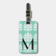 This design features a delicate white shell flourish damask pattern against an aquamarine background. The background colour is customizable to the colour of your choosing. Personalize with your monogram. Makes a lovely gift for frequent travelers.
