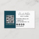 Elegant Dark Bleu And Floral Gold Leaf QR Business Card