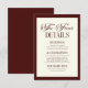 This is a Modern Elegant Dark Burgundy Vintage Ivory Wedding Details Card!
