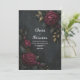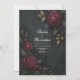 Create an impression of luxurious mystery with this stunningly sophisticated invitation design. The artwork features a deep, textured charcoal background that sets a moody and dramatic stage for the botanical elements. Unlike other designs, this layout incorporates shimmering metallic gold leaves intermingled with the dark foliage, adding a radiant, magical contrast to the deep burgundy and wine-colored roses. A thin, simple geometric line frame in a matching gilded tone outlines the design, providing a modern and refined structure that keeps the focus on the opulent floral corners. This elegant and moody aesthetic is a flawless choice for a formal winter wedding, a "Golden Age" themed party, or a sophisticated evening gala. You might also select this unique style for a milestone golden anniversary dinner, a high-end corporate holiday invite, or a romantic engagement announcement. This decorative gilded floral border is also perfectly suitable for luxury salon price lists, boutique jewelry business cards, or dignified memorial service programs.