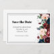 This Save the Date card features elegant serif typography and bold florals in deep colours. This sophisticated card provides a chic aesthetic that perfectly complements your wedding invitation suite, ensuring your guests mark their calendars in style.