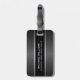 Stylish luggage tag featuring your name in white on a black background with dark gray gradient borders top and bottom. Address on the back.