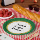 A display image is in the centre. You can replace the image with your logo. The plate has a forest green and faux (not foil) gold border.