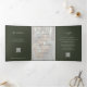 Elegant dark green classic photo wedding RSVP QR Tri-Fold Invitation