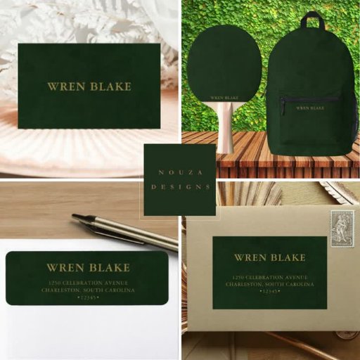 Elegant Dark Green Leather & Gold Script Name Binder