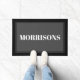 Elegant charcoal grey, white and black custom name text thin and thick borders Doormat