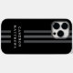 Elegant, black iPhone case with three dark grey lines running from top to bottom and your name across.