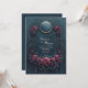 Captivate your guests with this spellbinding design that blends Victorian elegance with a touch of mystery. The artwork features a deep, textured dark navy background, framed by an ornate antique metal border with delicate filigree details. Rich, velvety blooms in shades of burgundy, wine, and deep crimson cascade along the bottom, interspersed with dark foliage. The top of the frame is crowned with a decorative crescent accent and draped with strings of small hanging beads, adding a layer of opulent detail to this romantic composition. This dramatic and moody aesthetic is a flawless choice for a twilight ceremony, a formal masquerade ball, or a gothic-inspired winter wedding. You might also select this sophisticated style for a milestone anniversary dinner, an exclusive evening gala, or a theatrical premiere party. This ornate floral border is also perfectly suitable for memorial service programs, high-end salon service menus, or luxury boutique gift certificates.