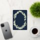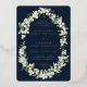 Hand painted snowberries and stems of eucalyptus arranged into a beautiful botanical frame against a dark navy background. The text and scattered dots on the front of the card are foil pressed. All text is fully editable. Please view this Collection in my store for invitations with alternative wording options, different colours and for coordinating items.