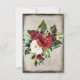 Exquisite dark red and white watercolor floral arrangement at the top left corner of response card. Grey grunge background with elegant script and serif font combination for rsvp details. Back of card features an enlarged version of the same elegant floral arrangement on the same textured grey grunge background.